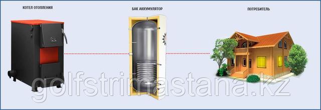 Бак аккумулятор позволяет объединять в одну систему различные источники тепловой энергии: твердотопливный, электрический или газовый котел, солнечные коллекторы, тепловой насос. Бак получает тепловую энергию от солнечных коллекторов днем или от теплового насоса, электрического котла ночью по сниженному тарифу или от твердотопливного или газового котла, когда это необходимо. Это позволяет использовать различные источники тепловой энергии с максимальной эффективностью и экономией.